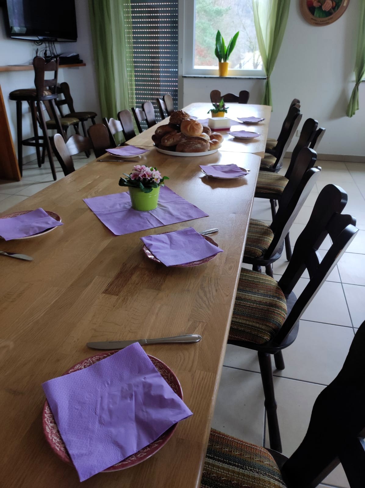 Nach dem reichhaltigen Frühstück und einem ersten Kennenlernen fand es eine anregende Physiotherapie-Stunde statt, bei der wir Übungen zur Kräftigung und Verbesserung der Haltungen gezeigt bekamen und bei der Ausführung durch die Physiotherapeutin Astrid professionell angeleitet wurden.
